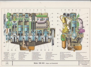 Prospekt - Blatt Mercedes BEnz Motor OM 355