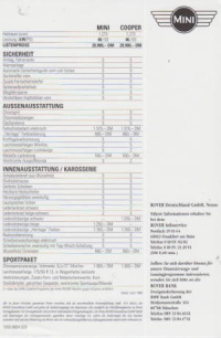Mini Cooper Preisliste April 1998 - 4329* - Histoquariat
