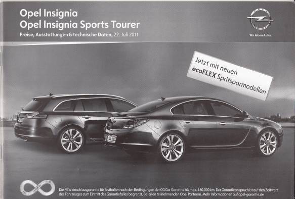 Preisliste Opel Insignia + Sports Tourer Juli 2011