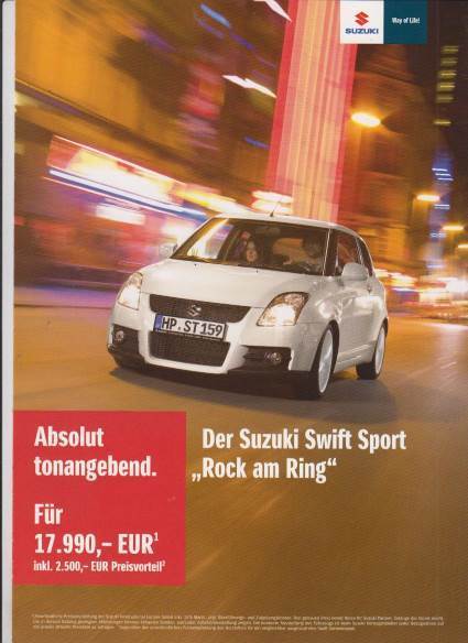 Schöner original Prospekt / brochure zum Suzuki Swift Sport Rock am Ring