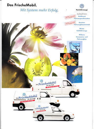 Original Autoprospekt zum VW Caddy, Transporter und LT - Die Frischemobile