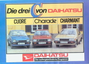 Erleben Sie in diesem Autoprospekt die drei von Daihatsu, die heute tolle Oldtimer sind: Cuore - Charade - Charmant