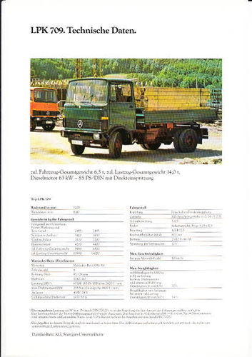 Original Technikprospekt zum Mercedes LPK 709