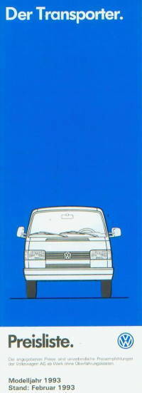VW Transporter Preisliste Februar 1993 -pr7